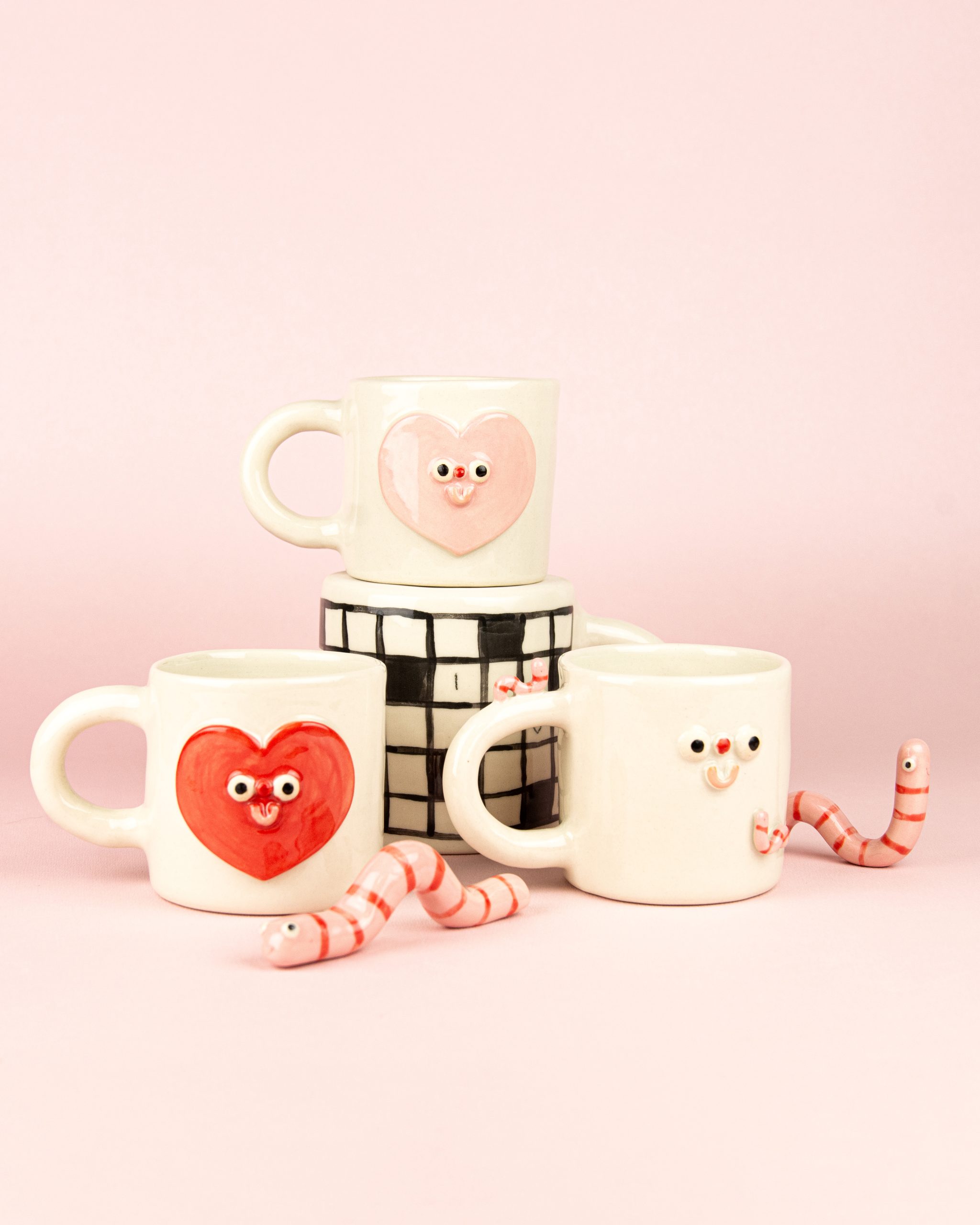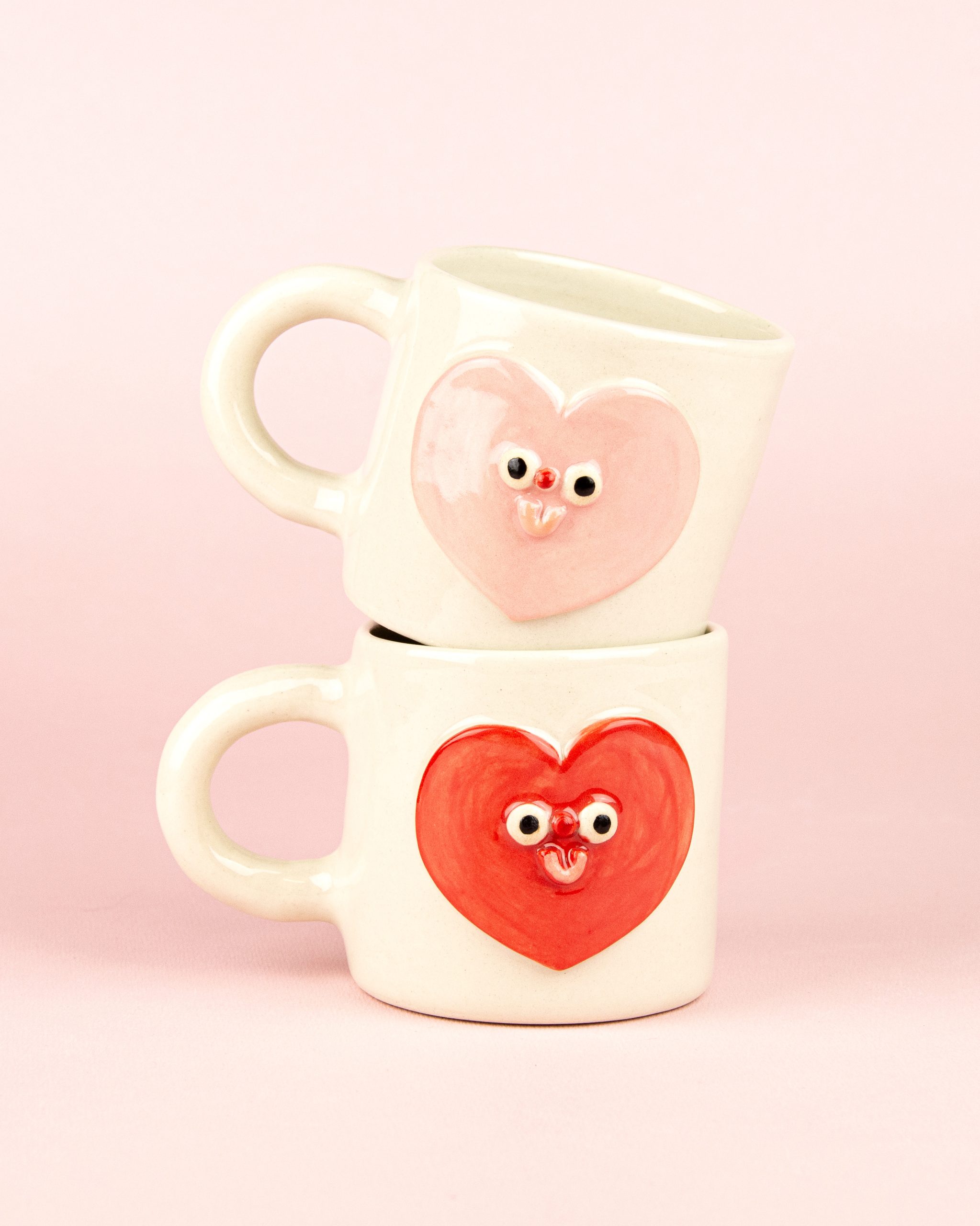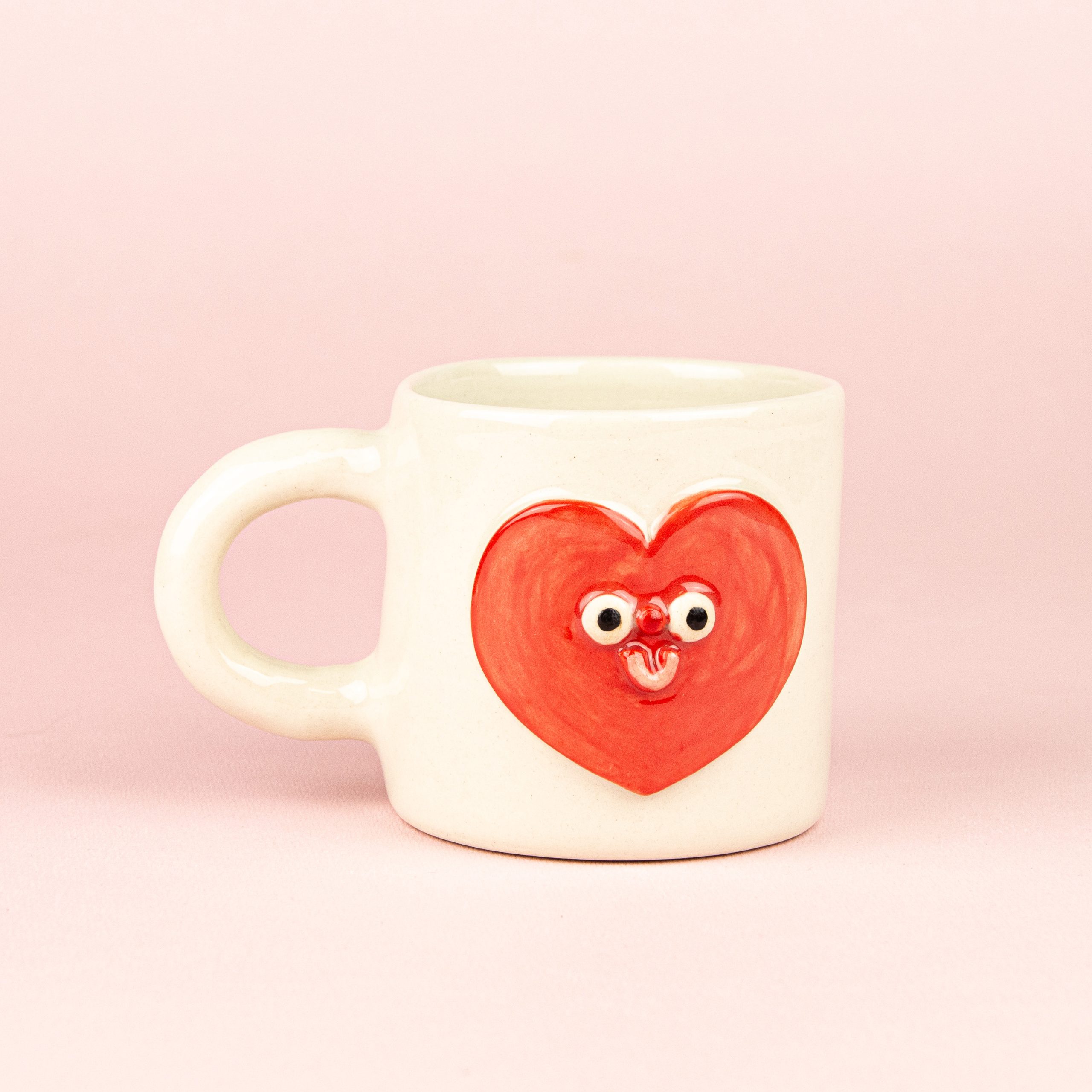 Ręcznie lepiony, biały z czerwonym sercem i uśmiechem w jego środku.
