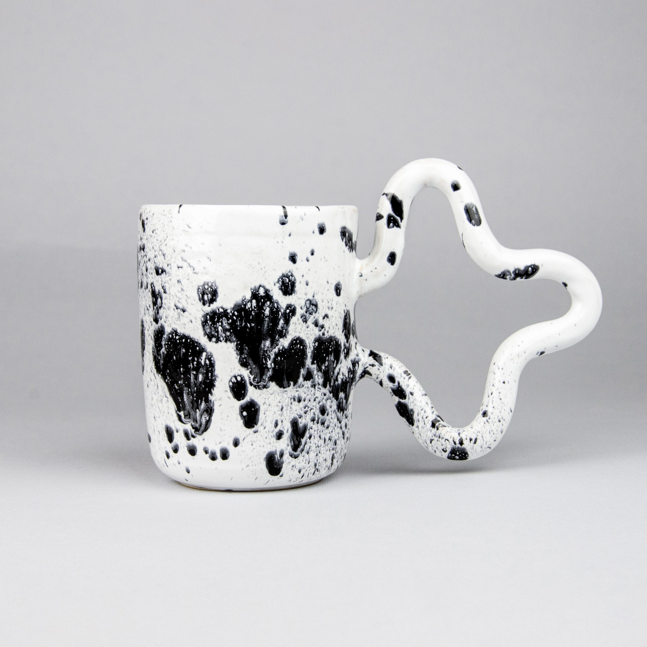 Minimalizm z pazurem! Kubek Funky Dalmatyńczyk to odważna wersja klasycznego modelu, która łączy elegancką monochromatyczną paletę z artystycznym rozmachem. Czarne rozbryzgi na białej ceramice przypominają futro dalmatyńczyka – każdy egzemplarz jest niepowtarzalny i przyciąga wzrok.