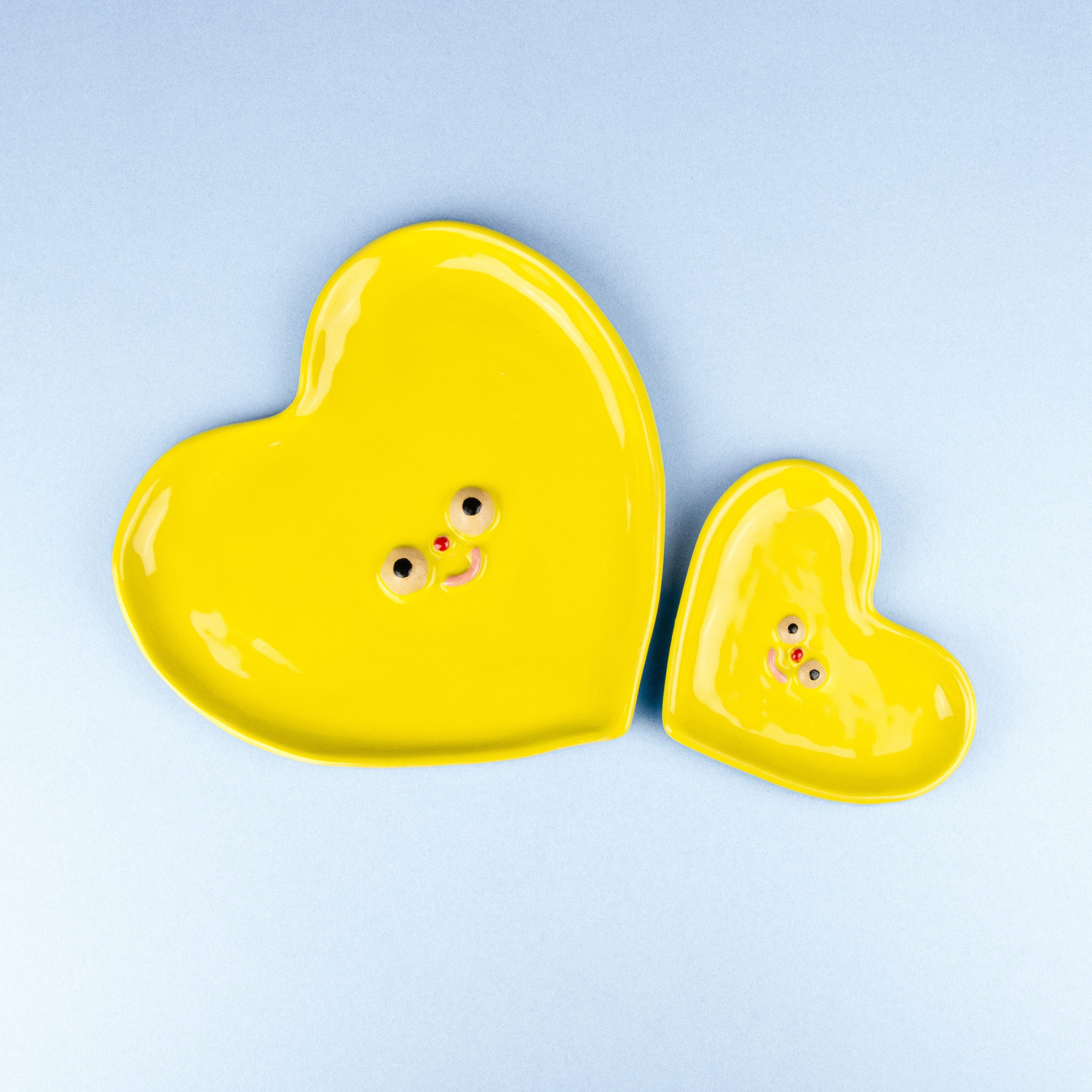 Nasz talerz w kształcie serca to idealny wybór dla każdego, kto ceni sobie nie tylko funkcjonalność, ale także pozytywną energię na stole. Wykonany z wysokiej jakości ceramiki, w pięknym słonecznym odcieniu żółci, a na jego środku znajduje się urocza, uśmiechnięta buzia, która poprawi humor już od pierwszego spojrzenia.